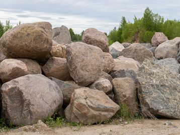 Large natural stones used as focal points, retaining features or decorative accents.